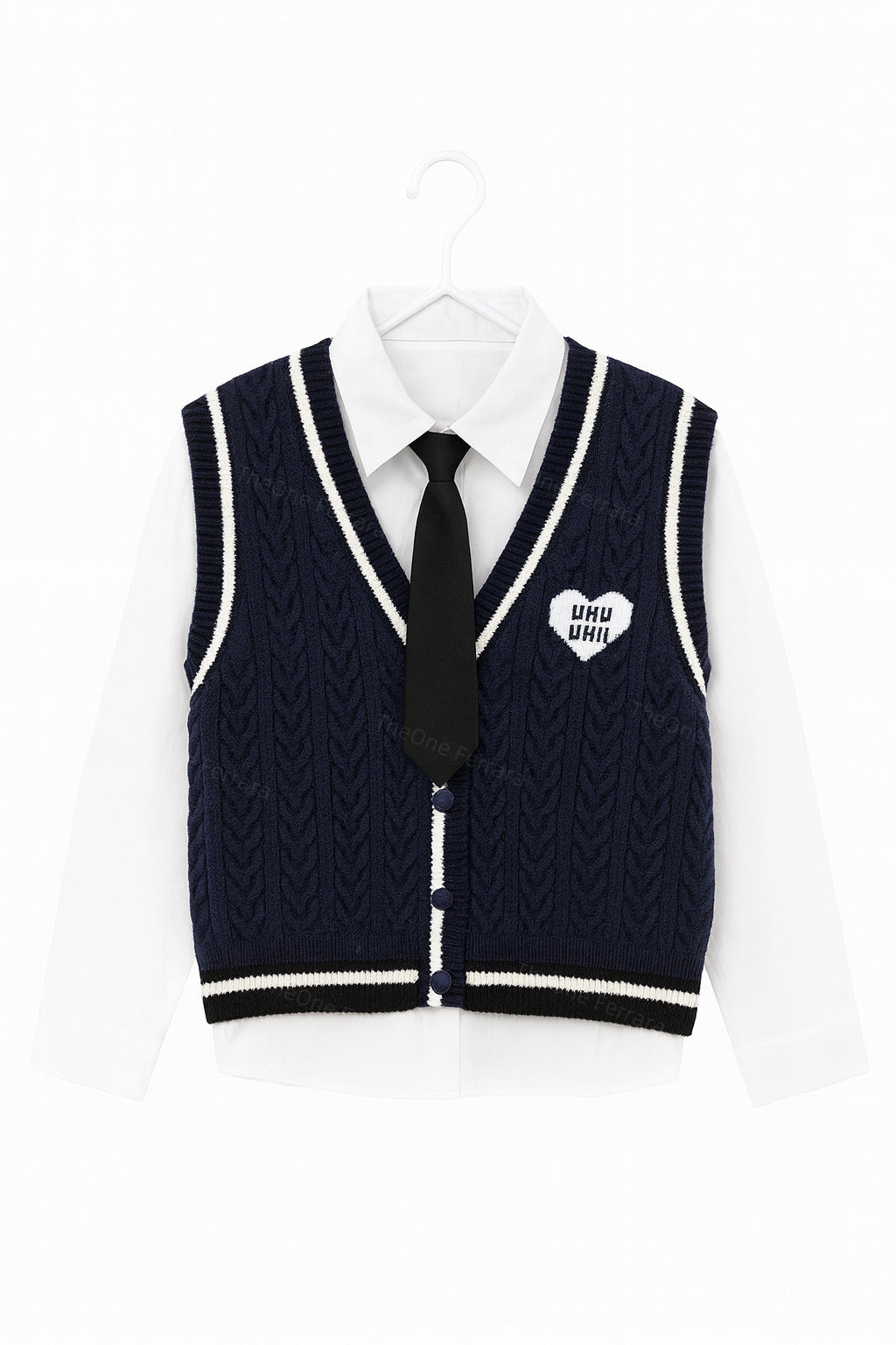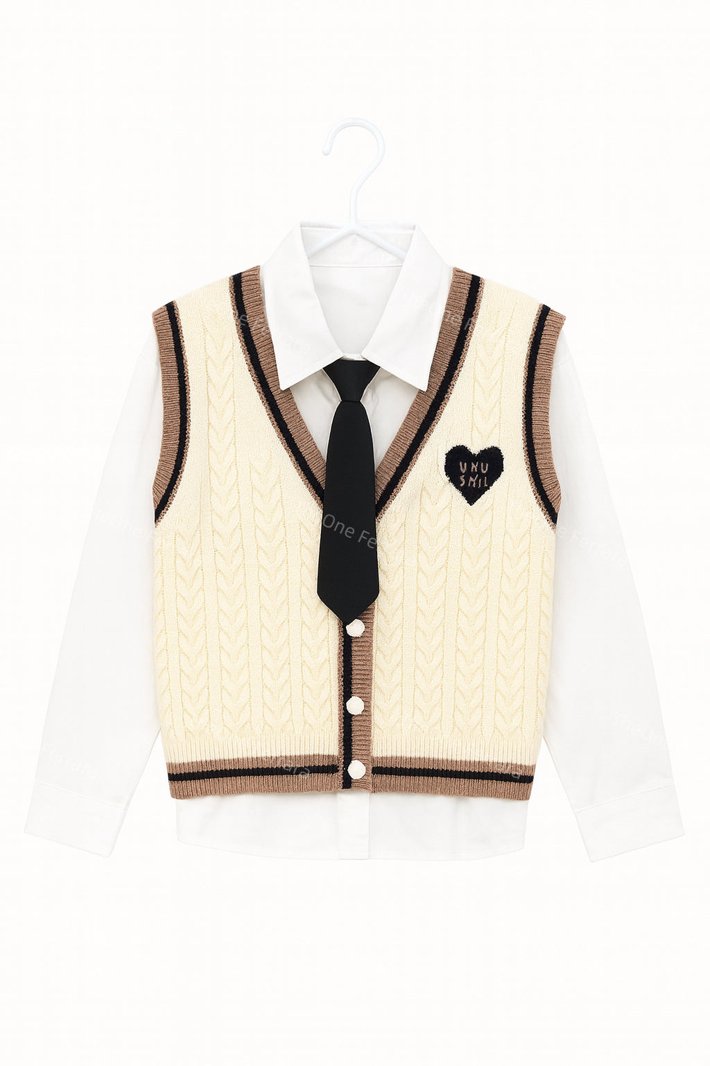Completo Donna 3 Pezzi con Gilet in Maglia, Camicia e Cravatta – Stile College Mod. TC-1888-TheOne