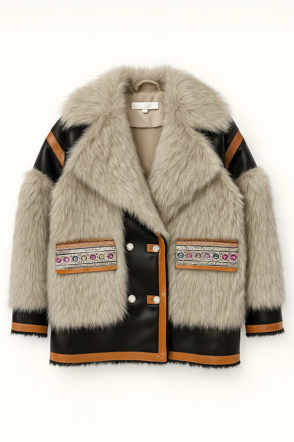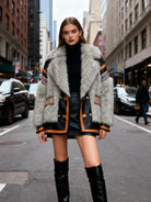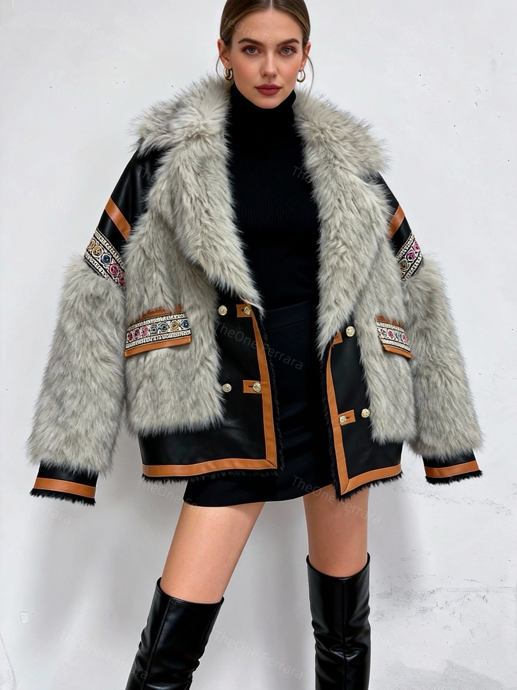 Giacca Donna in Ecopelliccia con Inserti effetto Pelle – Calda, Elegante, Stile Etnico DL30060-TheOne