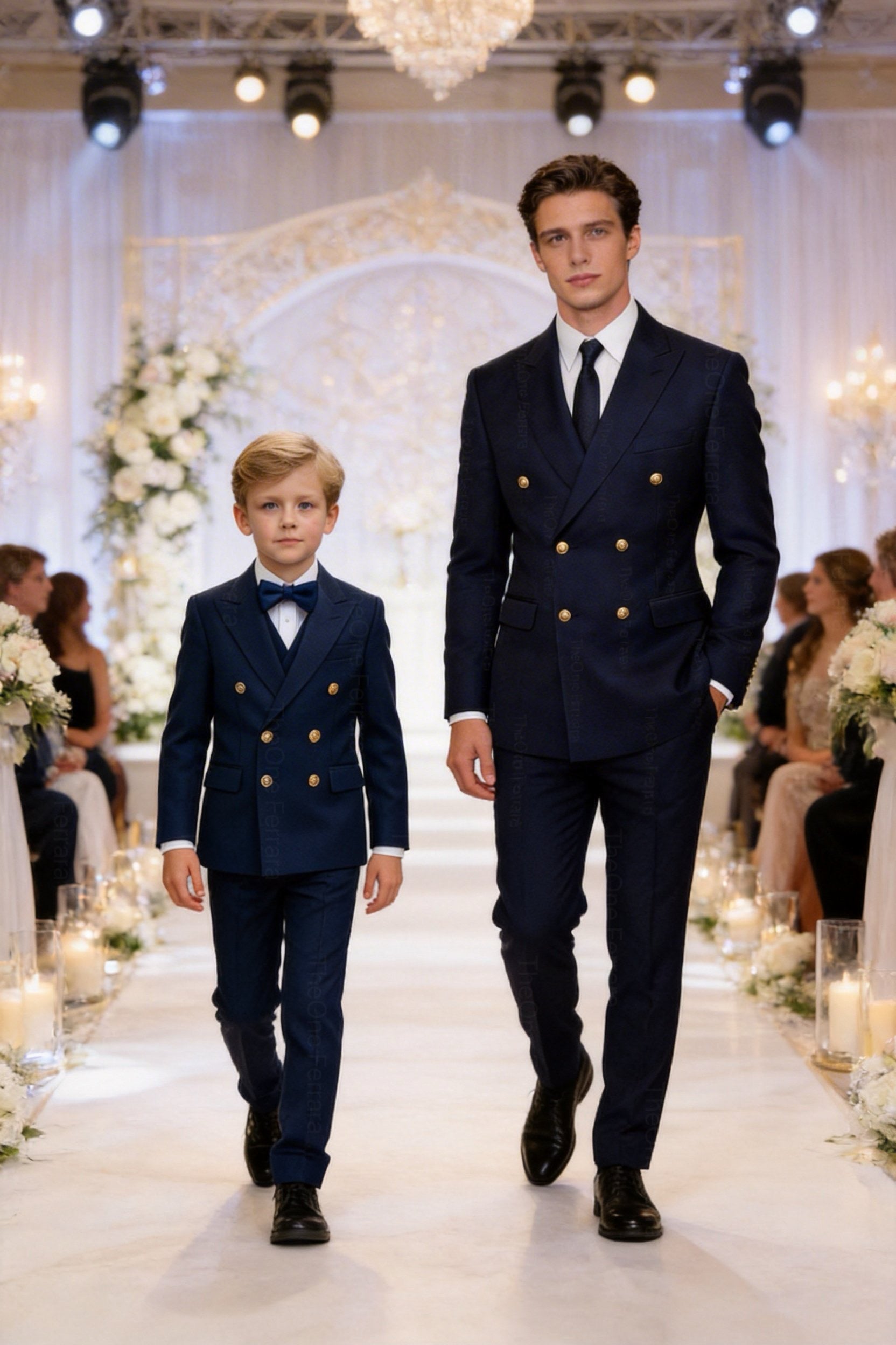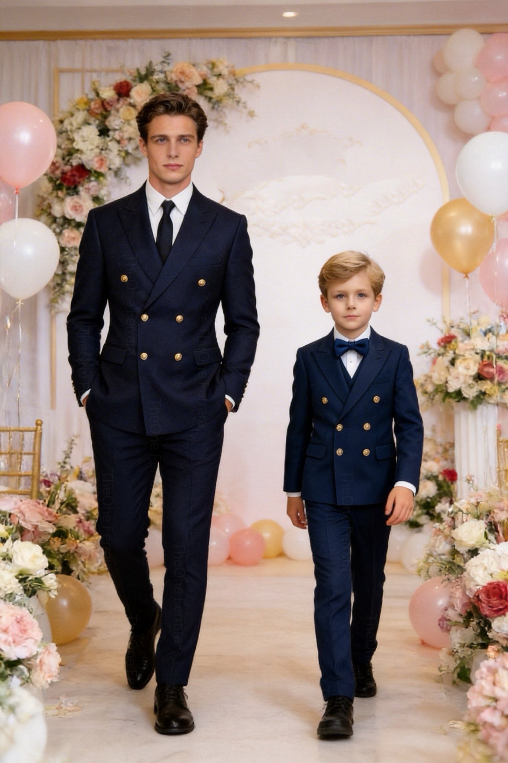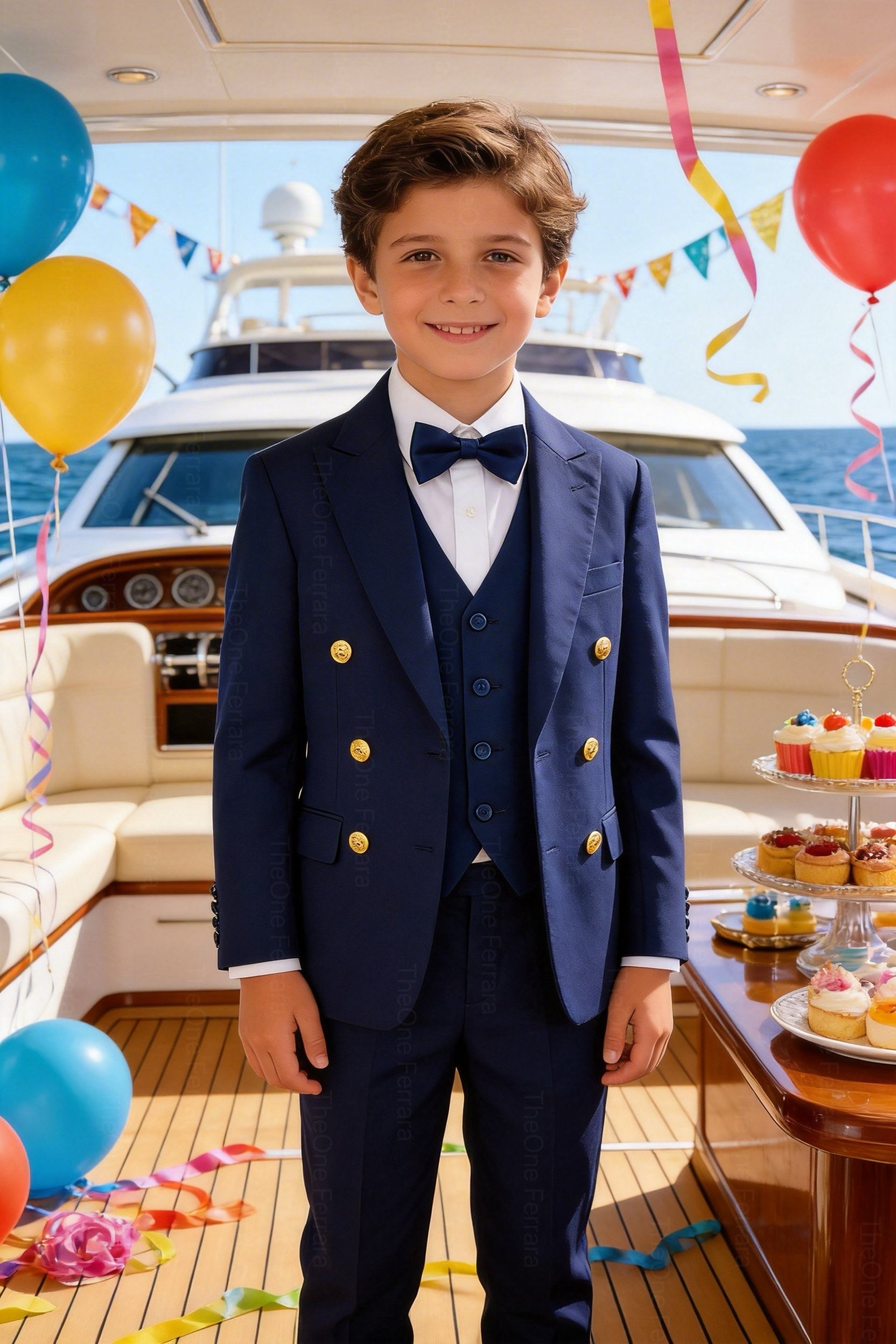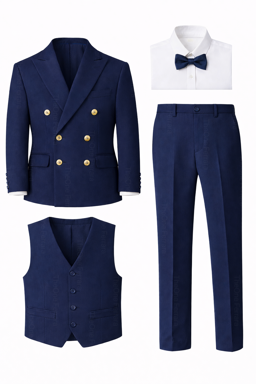 This refined tuxedo for boys aged 1–16 years includes a tailored jacket, a matching vest, a classic collared shirt, and a matching bow tie. The elegant and timeless design, inspired by Italian style, makes this suit perfect for the most important occasions.