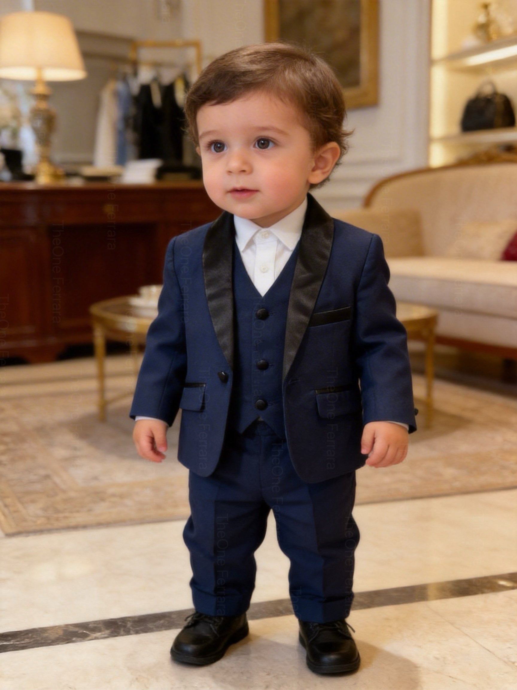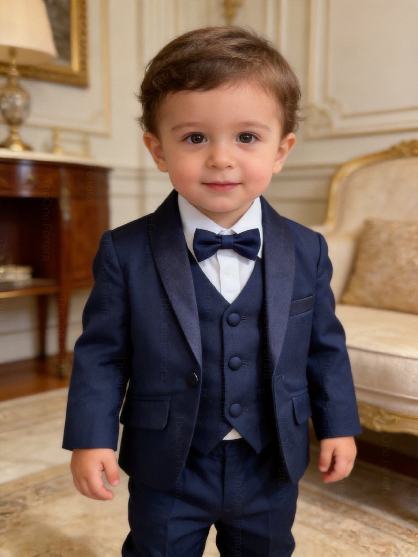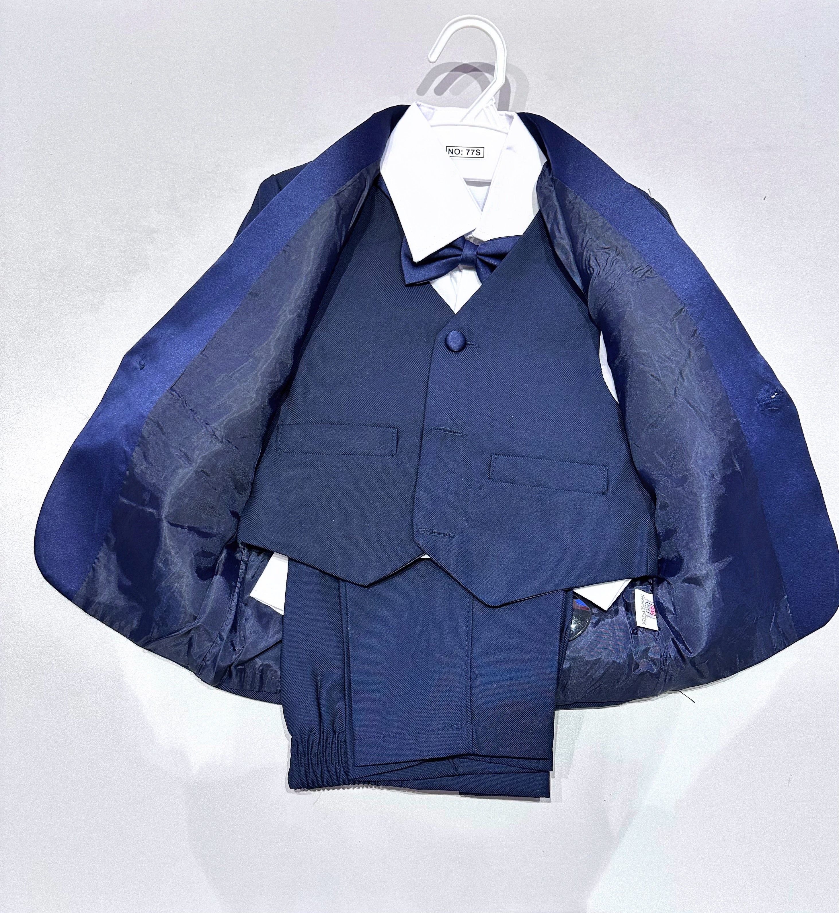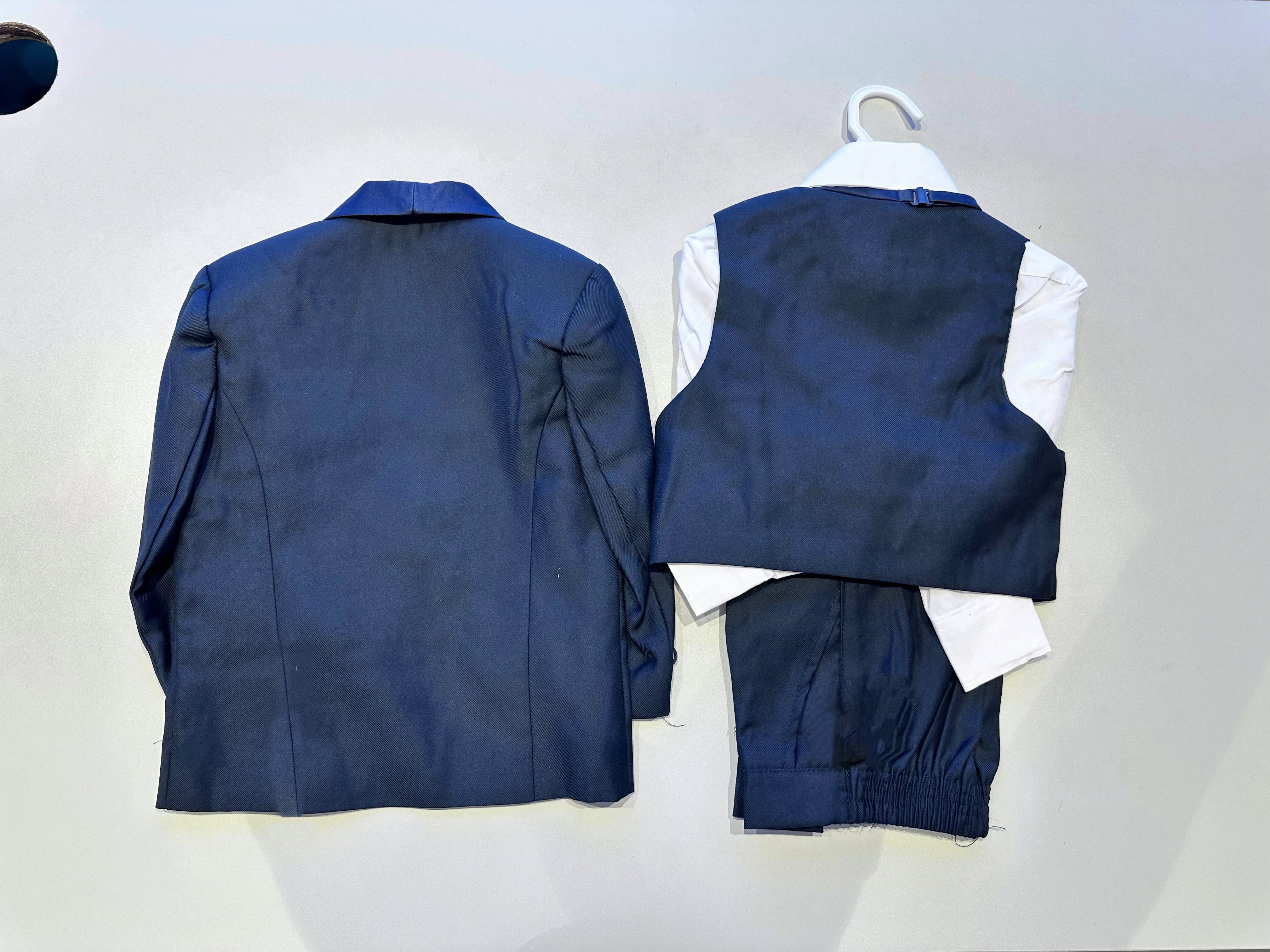 This elegant navy blue 5-piece suit is perfect for making your little one shine at weddings, parties and special occasions.