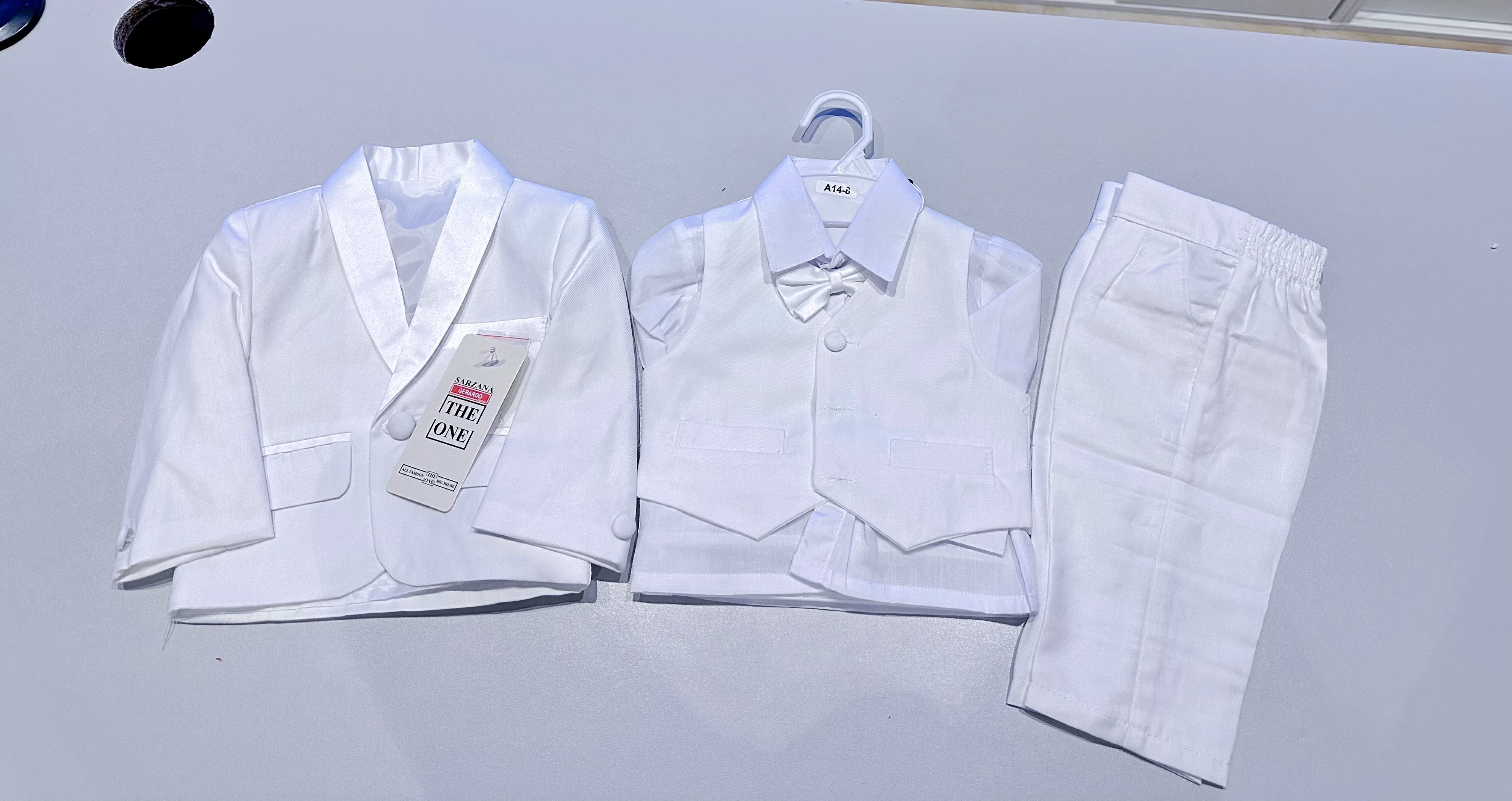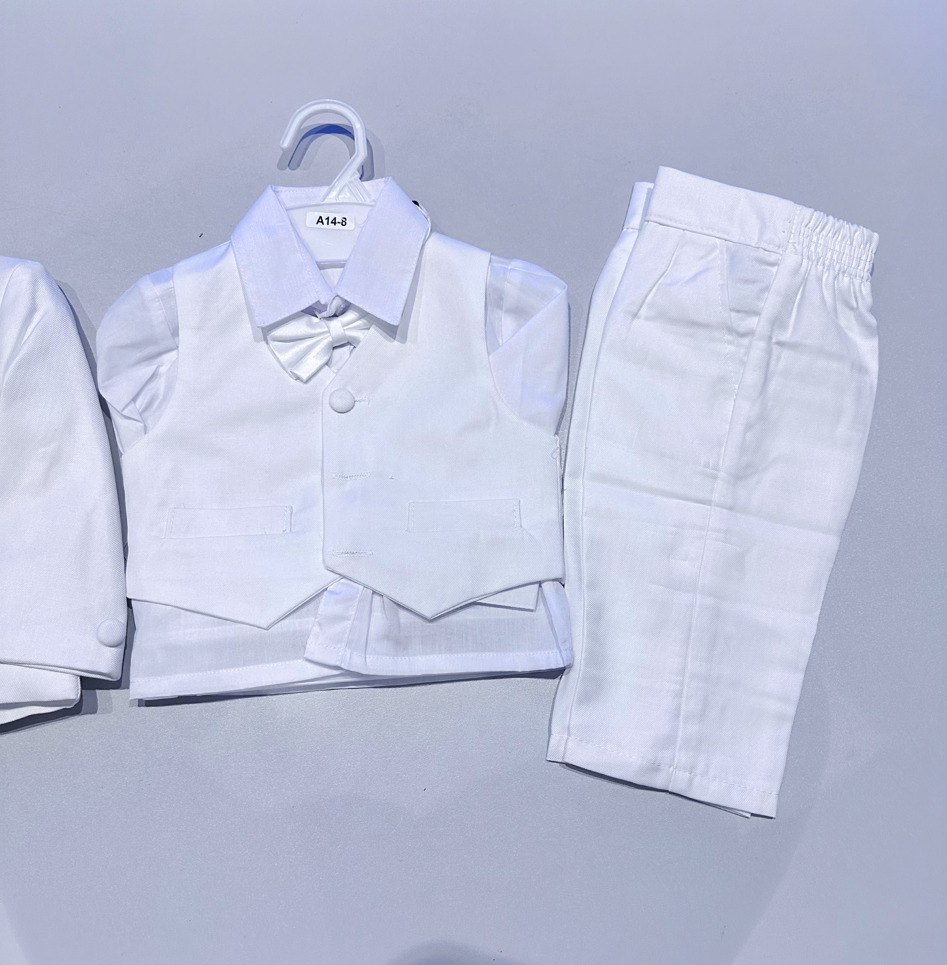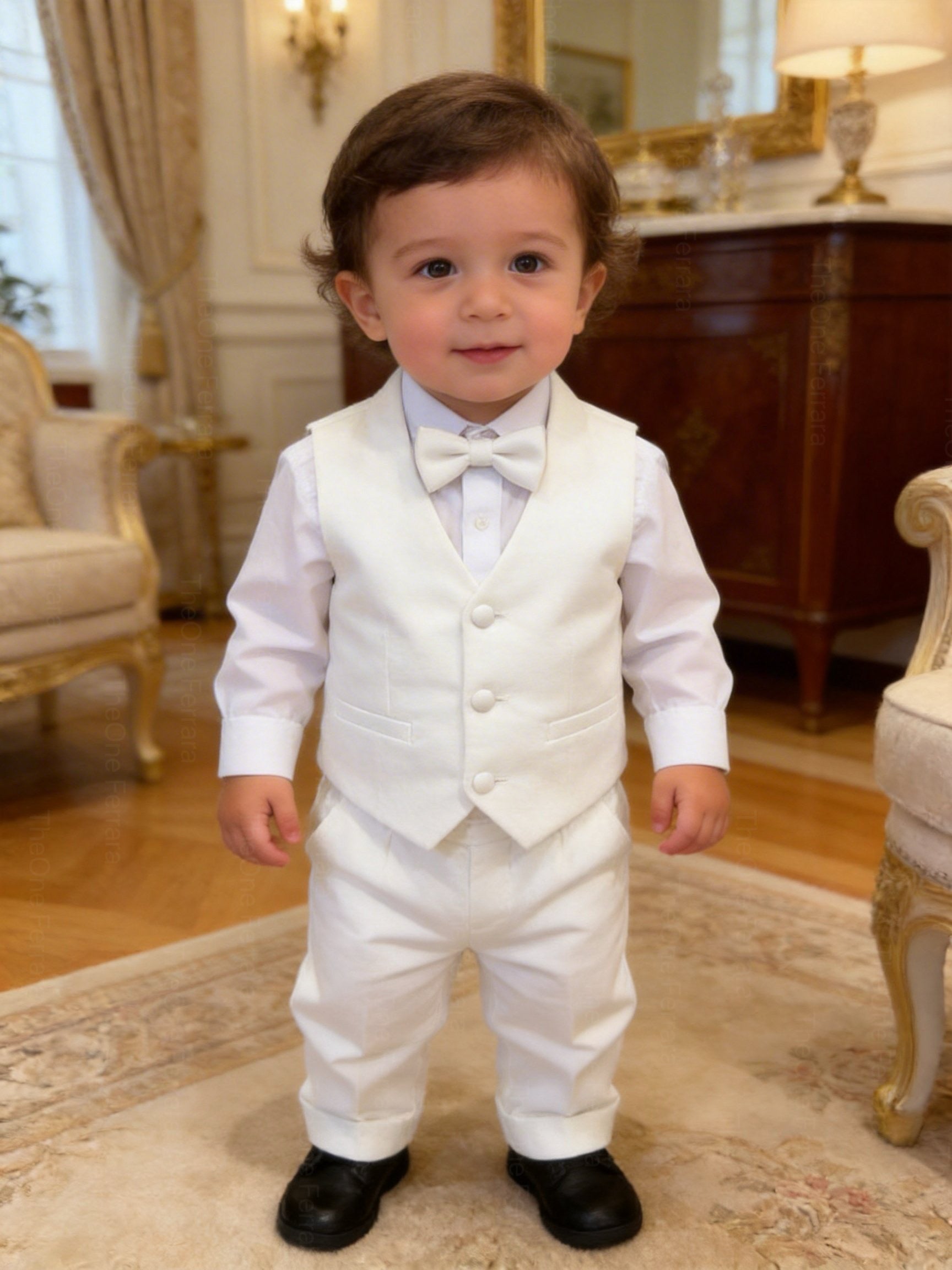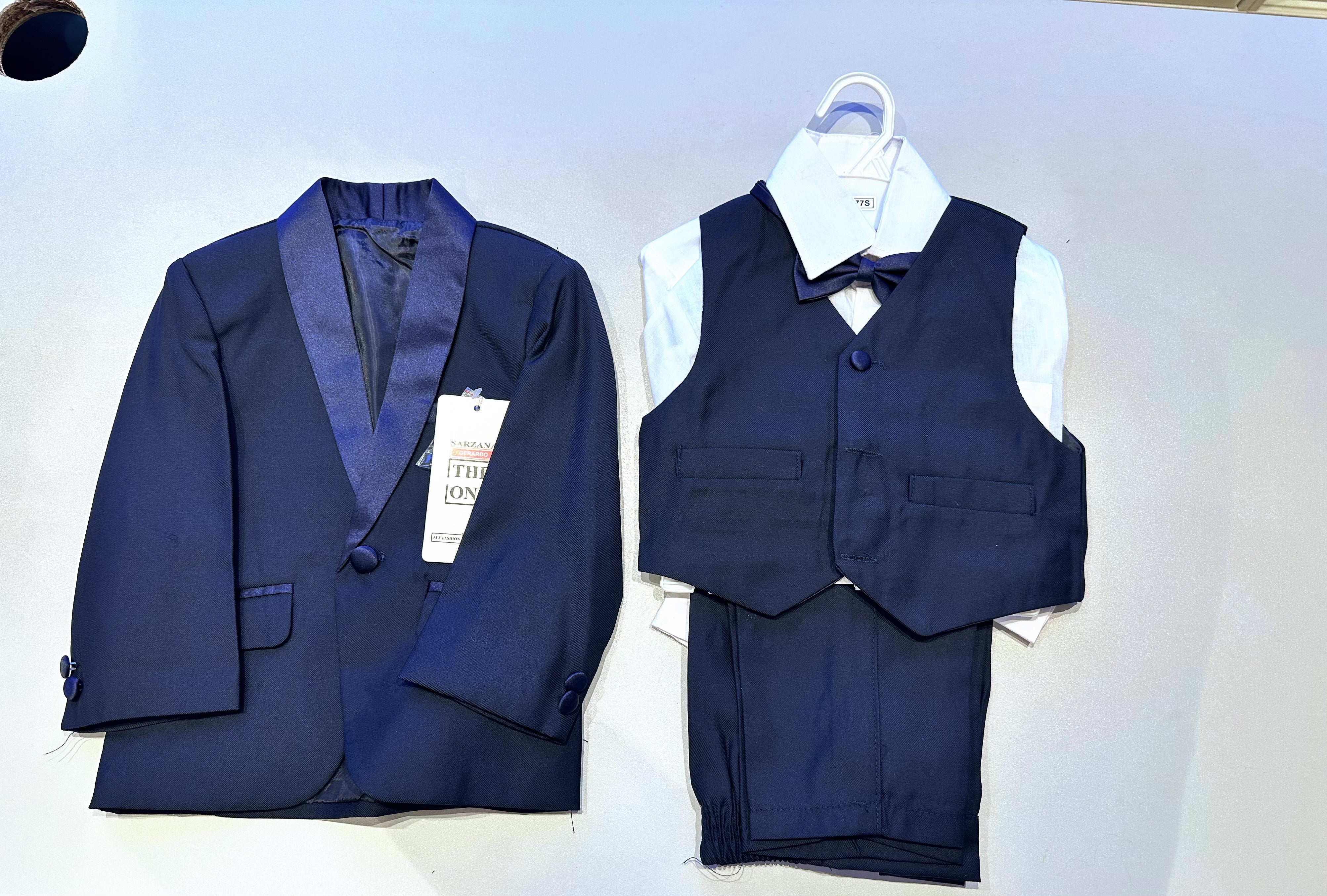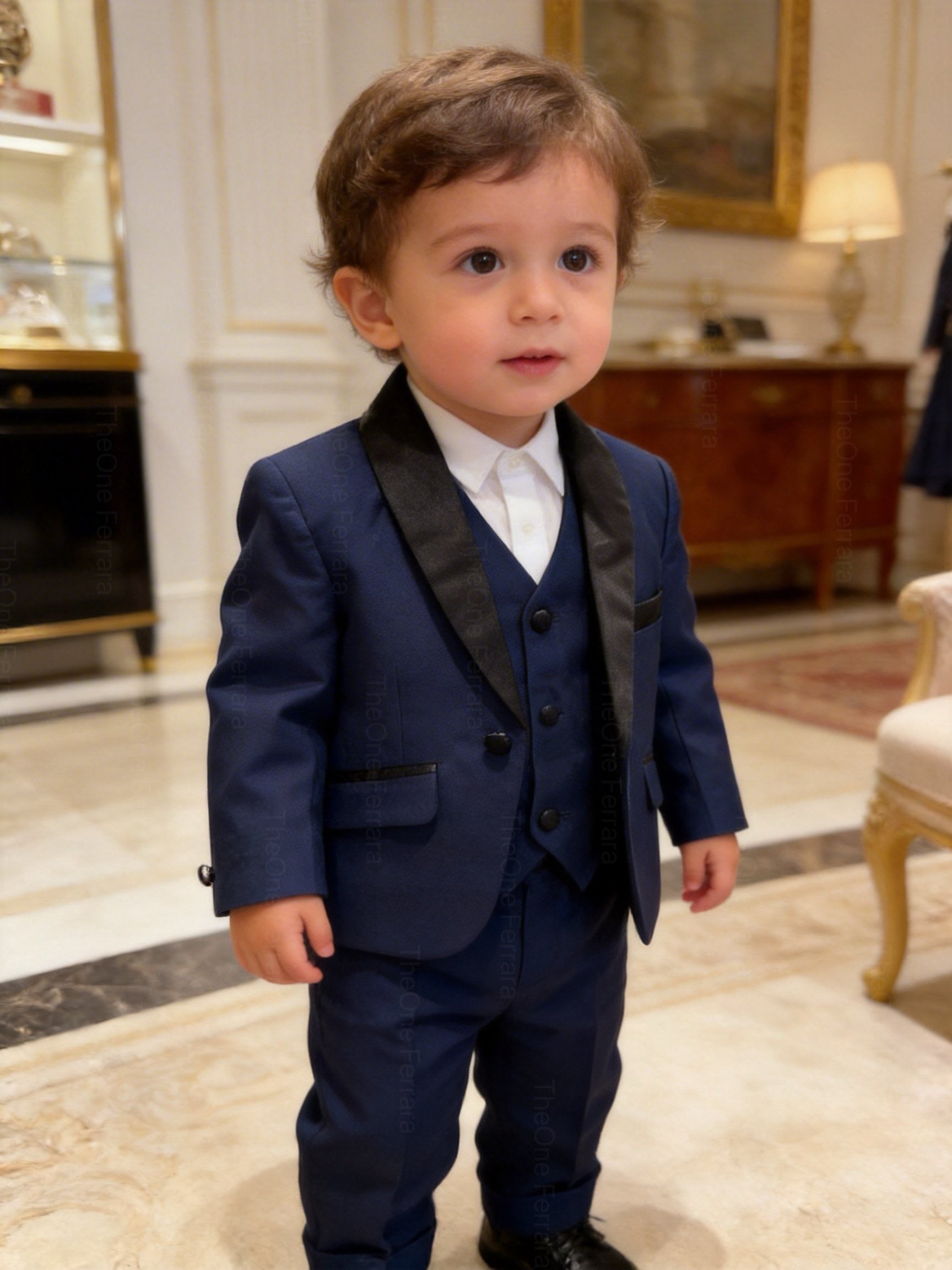 This elegant navy blue 5-piece suit is perfect for making your little one shine at weddings, parties and special occasions.