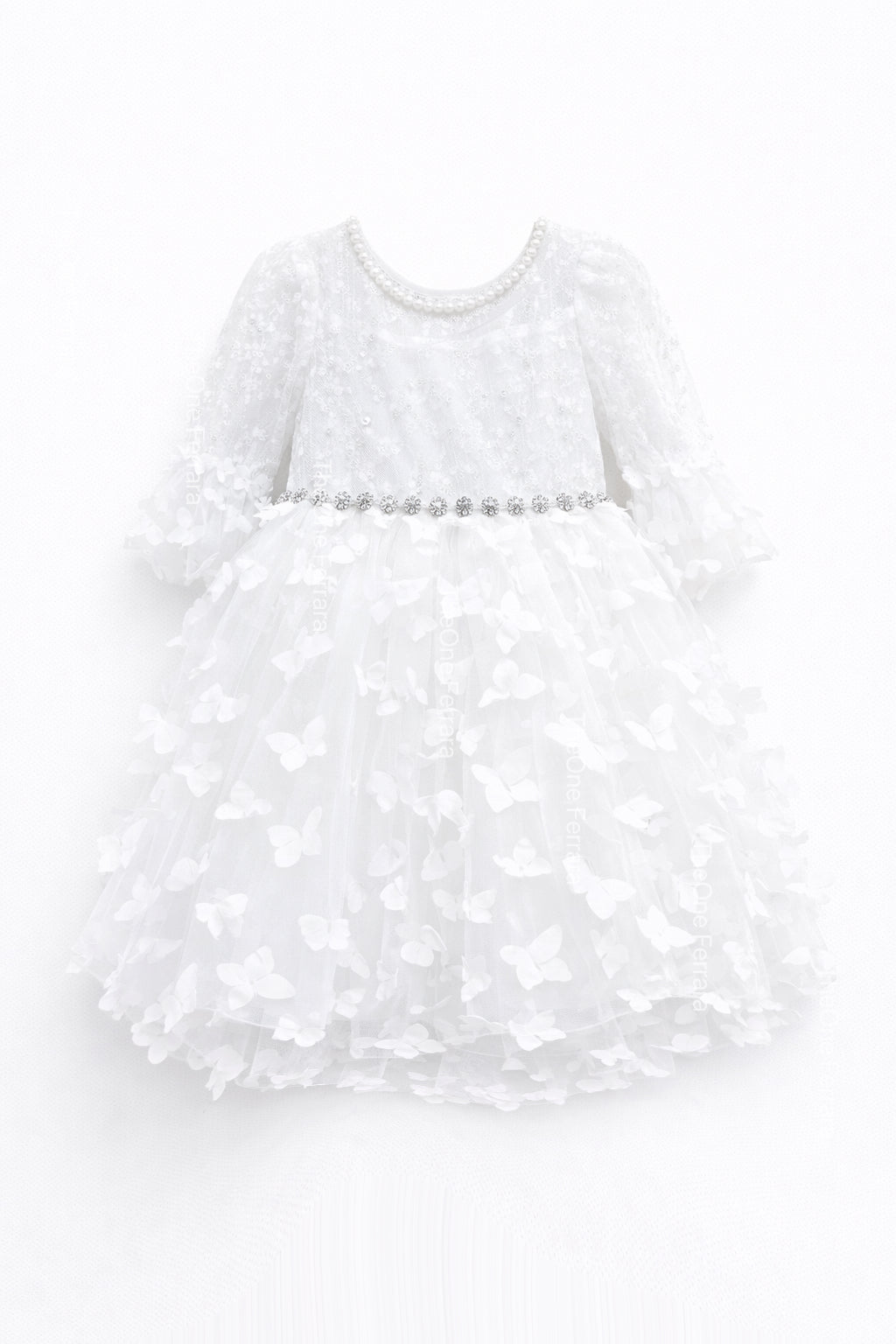 🦋 Pearl edging & rhinestone belt, elegant touch