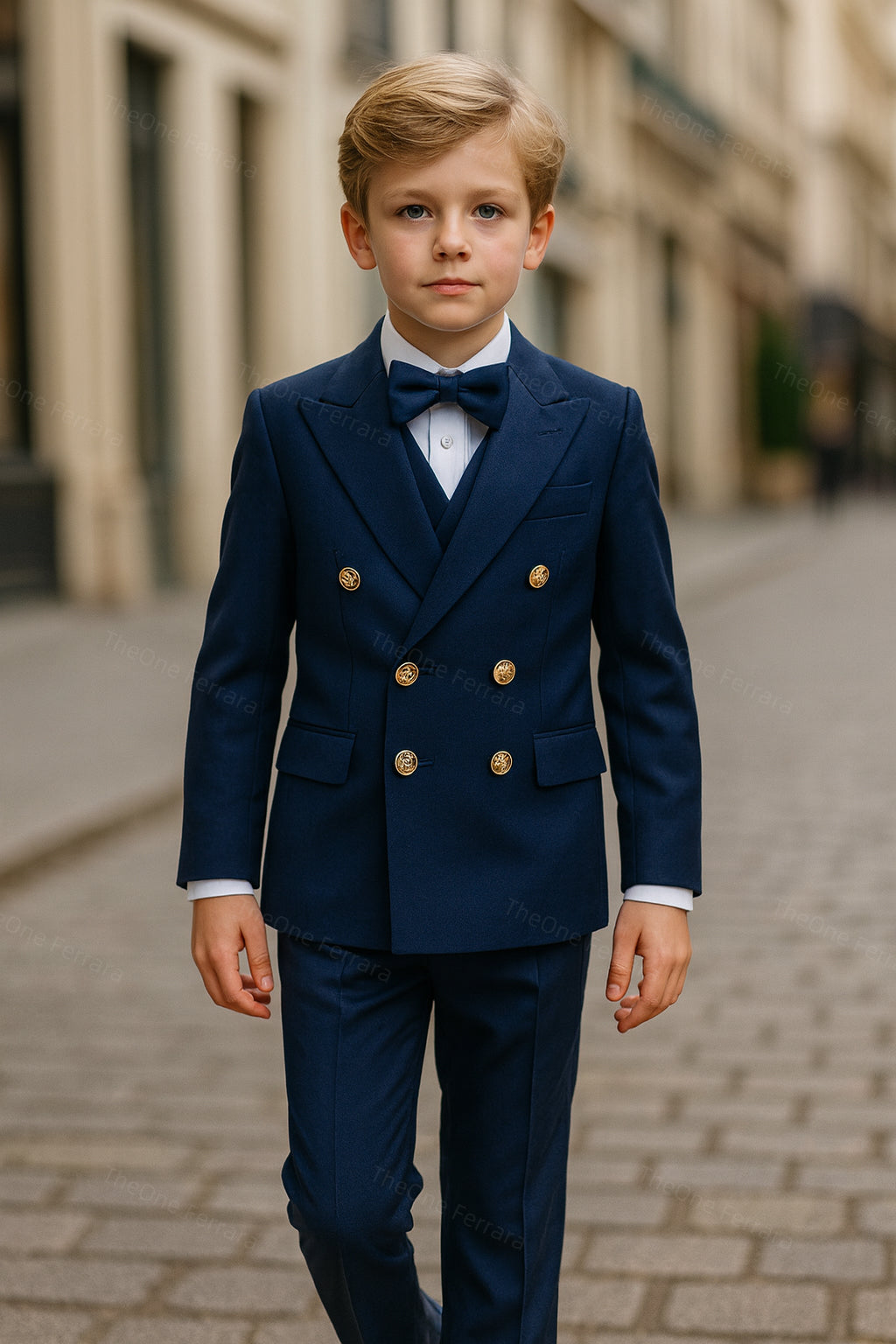 Abito da Cerimonia Bambino 1–16 Anni – Smoking Elegante Blu con Papillon-TheOne