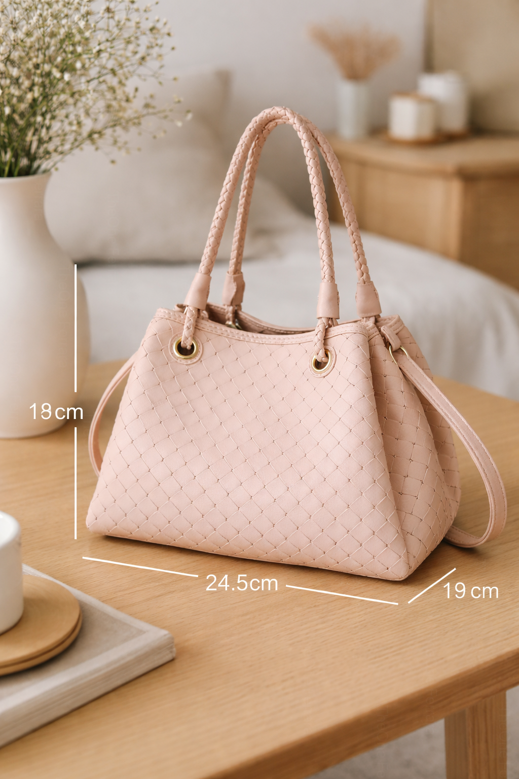 Borsa Donna Intrecciata Elegante 24.5cm – Mini Shopper con Tracolla | Stile Italiano Chic 9450