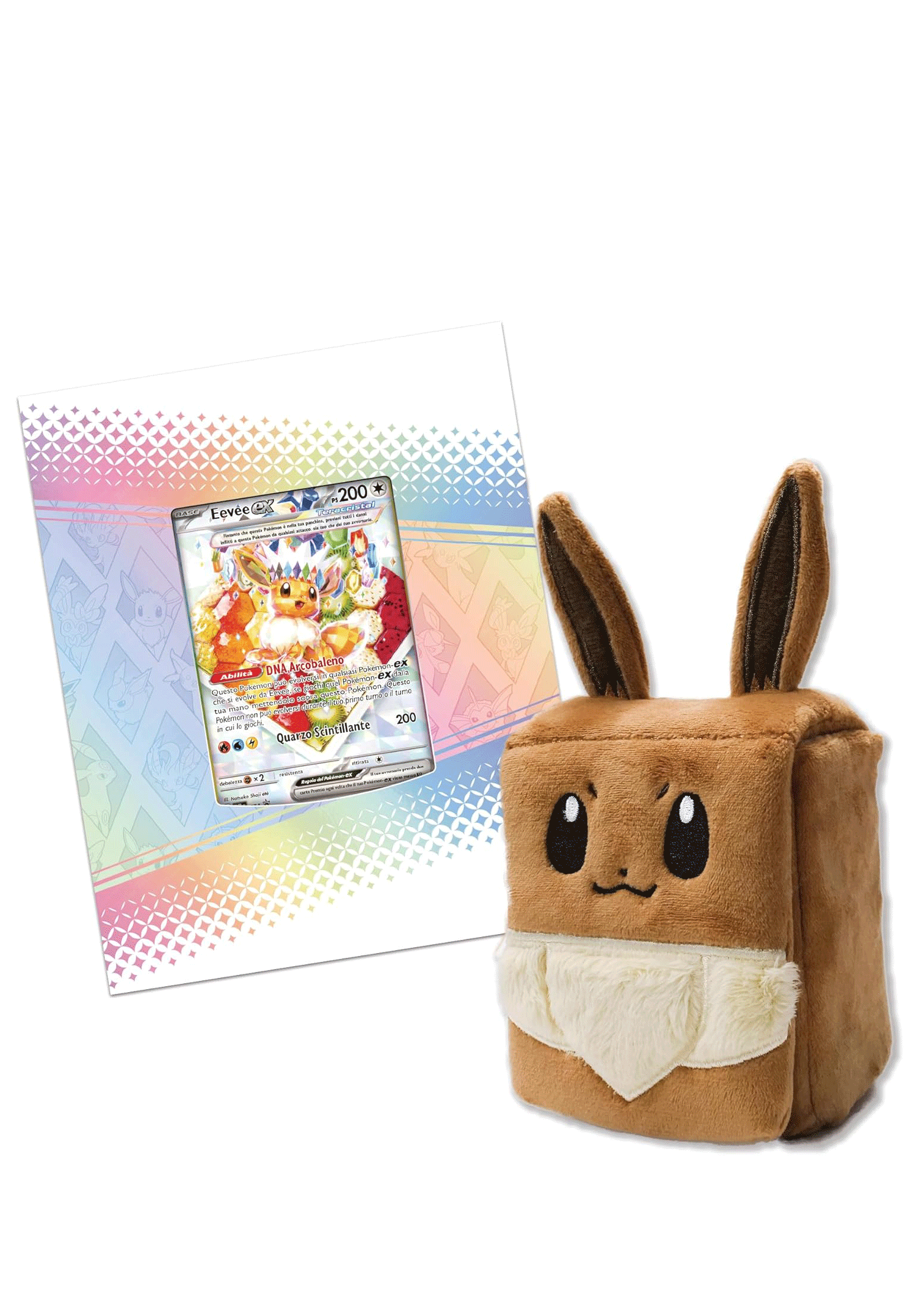 • una carta promozionale olografica a figura intera di eevee-ex