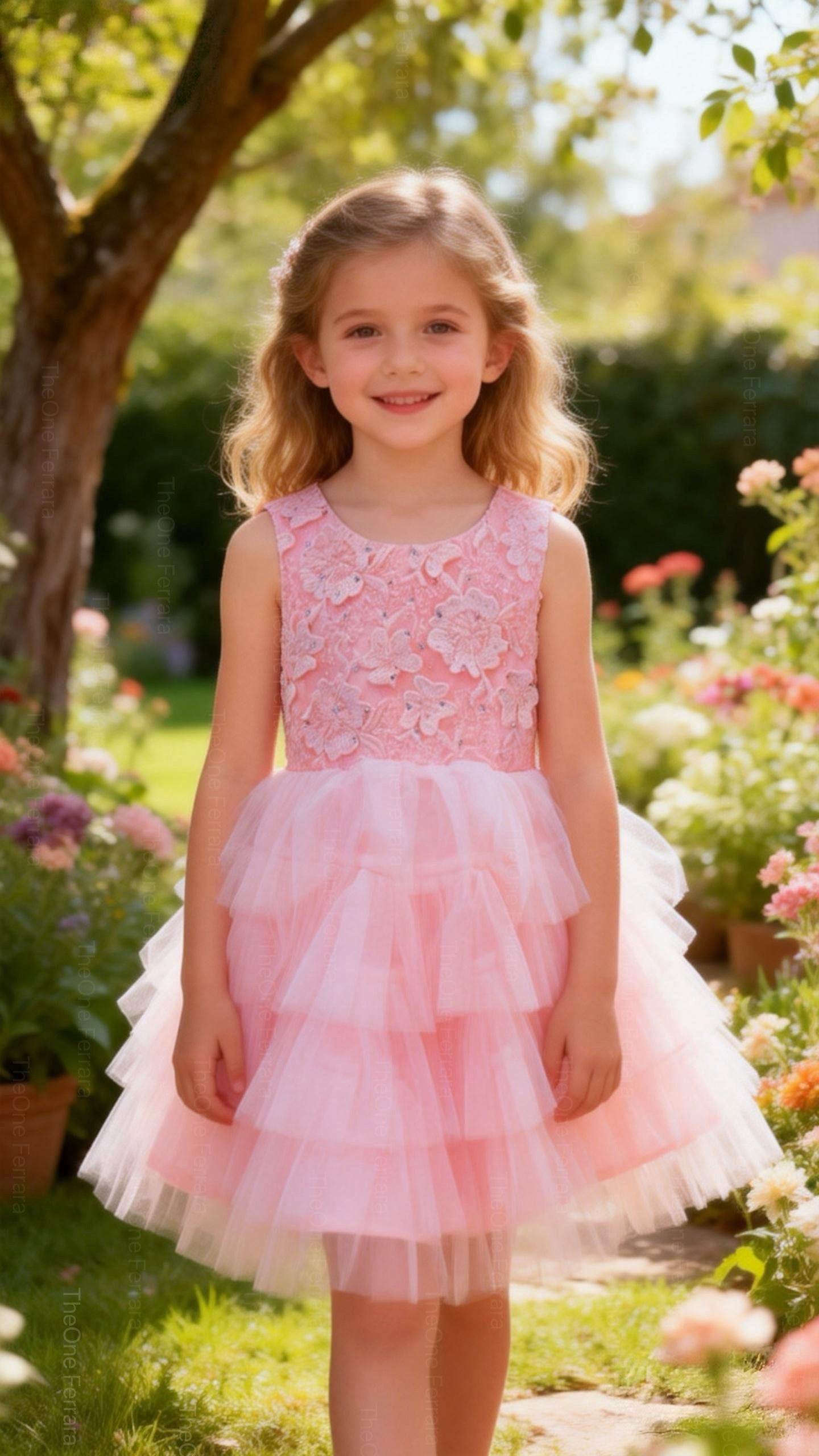 Questo abito da cerimonia per bambina è pensato per le occasioni più speciali, unendo eleganza, delicatezza e comfort.