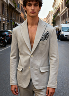 Niente fodere pesanti, niente spalline rigide. La spalla segue naturalmente la linea del tuo corpo. Questa è la saggezza dei maestri sarti italiani — la indossi e ti senti libero come senza giacca, ma più elegante di chiunque altro.