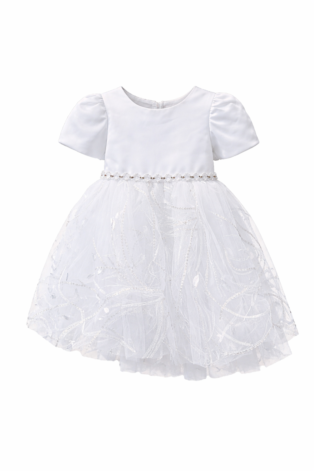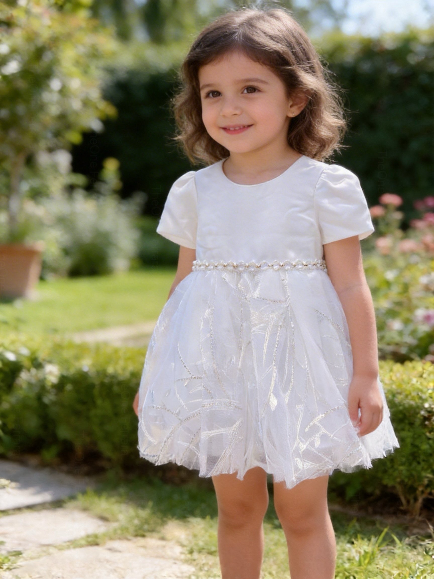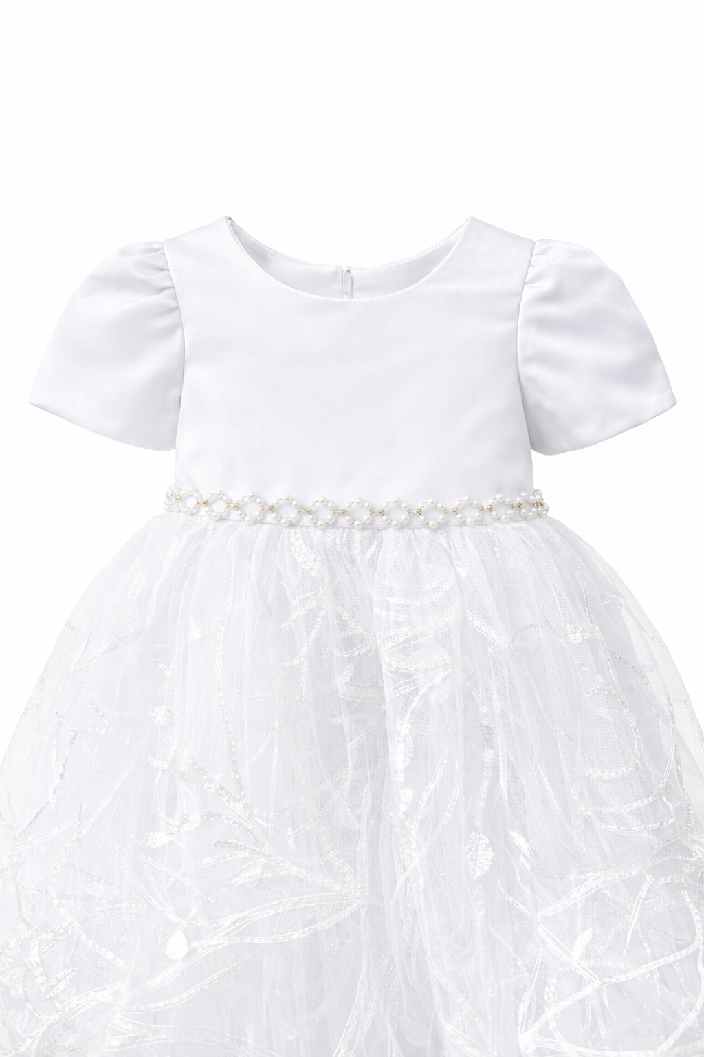 Vestito bianco bambina con perline e tulle 3M–36M Battesimo, Cerimonia, Matrimonio